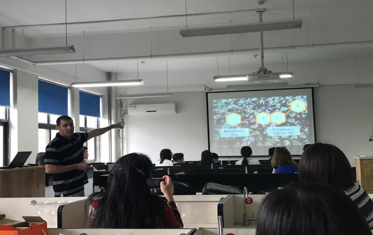 研究生会学术部特此举办此次报告会,会上Federico Casassa主要对自己在葡萄中酚类物质的组成及作用进行深入讲解,并分析了不同的酿造工艺对葡萄酒中酚类物质的含量也有重要的影响。最后,Federico Casassa取出三款酒让大家进行品评,通过实例让大家了解了不同的酿造工艺及原料的差异对葡萄酒的风味和质量有着重要的影响。