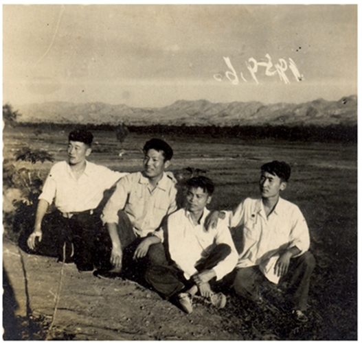梁增基西农上学期间,1959年在陕南商县沙河子劳动锻炼跟同学的合影(右二)