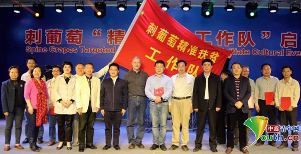 中国中央电视台著名主持人、《乡村大世界》制片人毕铭鑫先生、《乡村大世界》栏目公益部主任董振礼,赣南日报社副总编李忠生,刺葡萄种植农户代表、企业员工代表、专家团和技术分队成员等100多人出席了“工作队”启航农民晚餐会。来自中国著名高校的专家和教授们、加拿大农业专家、以及其他专家团、技术分队成员与广大种植户、村民、村干部、企业员工代表等一起,在君子谷野果世界国际会议中心举行了刺葡萄“精准扶贫工作队”启航仪式。