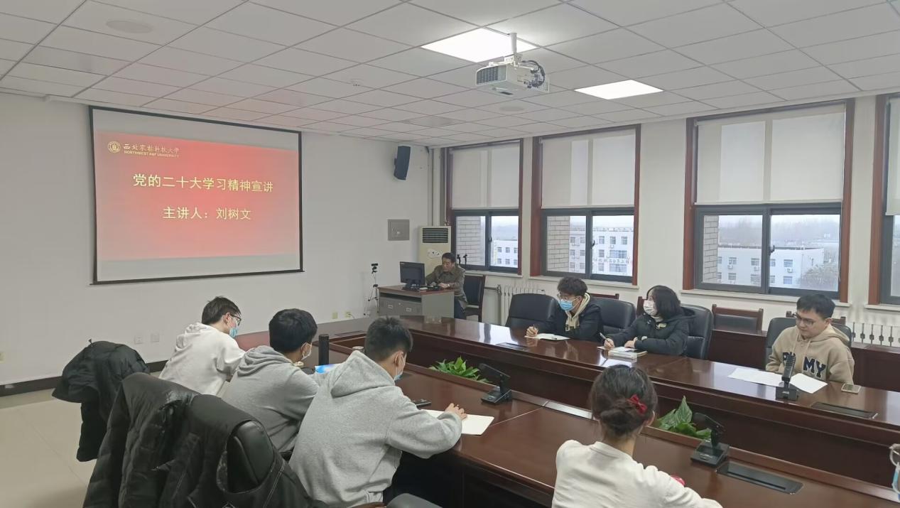 第二十三期团分校培训班全体同学宣讲党的二十大精神。院分团委副书记袁伟和三十余名同学共同聆听了此次讲座。