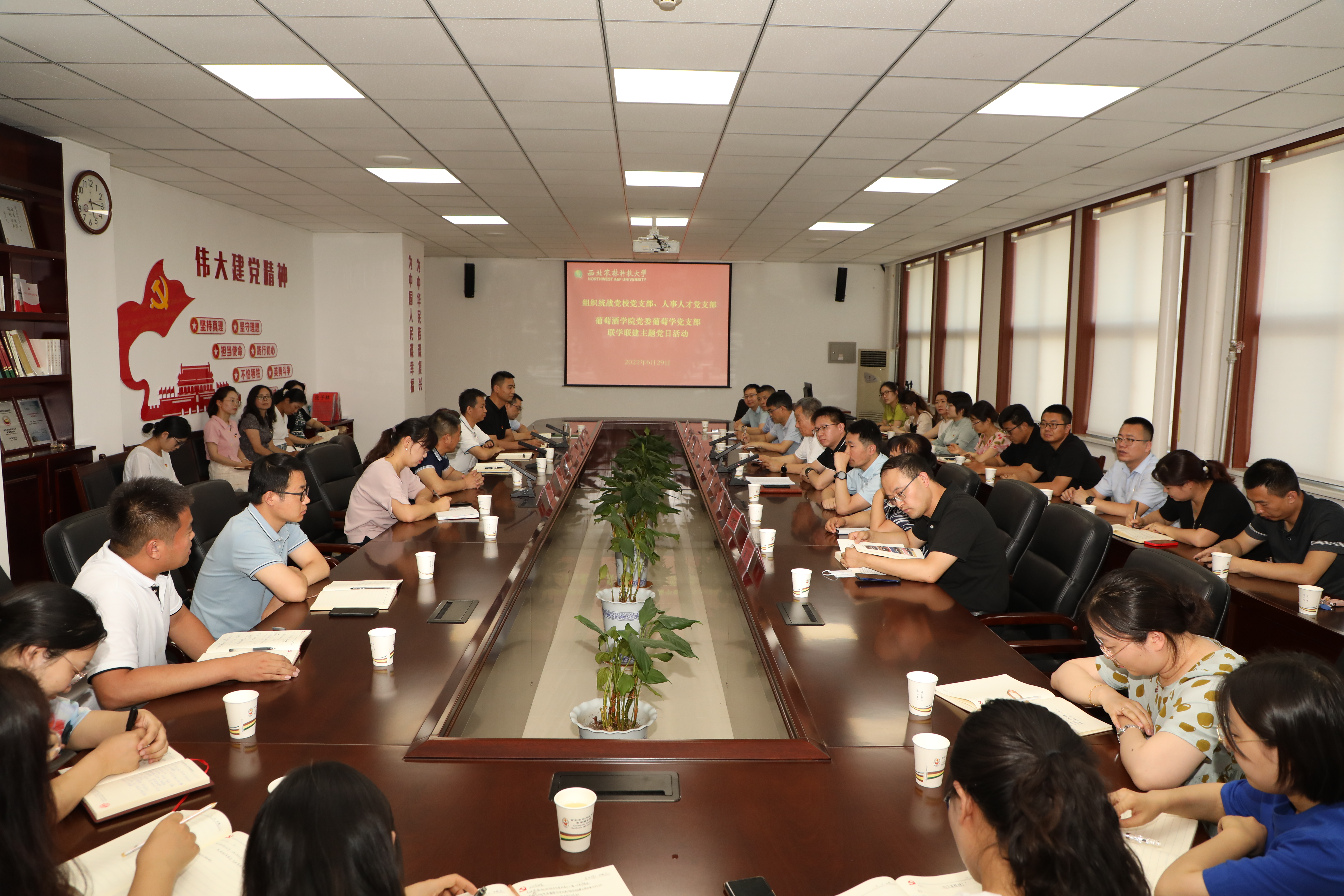 党委书记郭建东、院长刘树文、党委副书记徐三友等参加了联学联建主题党日活动。活动中,葡萄学党支部书记惠竹梅作“弘扬科学家精神,创建样板党支部”的经验分享,刘旭等与会成员分别结合自身教学、麻豆成人
