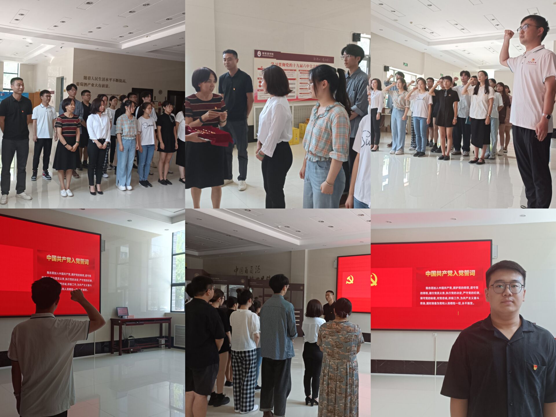 党委举行2022上半年预备党员集中入党宣誓仪式。各党支部书记为新吸收预备党员发放、佩戴了党徽。“我志愿加入中国共产党,拥护党的纲领,遵守党的章程……”20余名在校党员举起右拳,面对党旗,郑重宣誓,许下为共产主义奋斗终身的誓言。