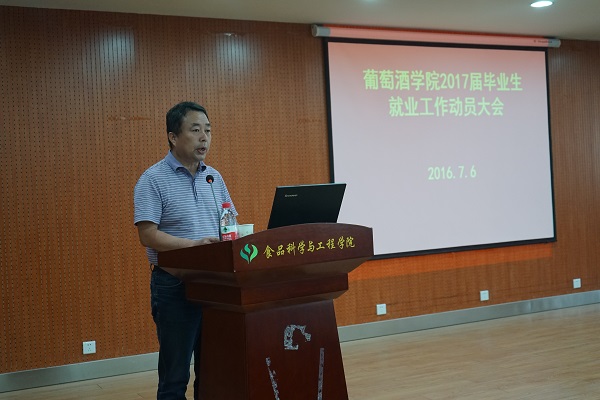 副院长房玉林从葡萄酒产业的基本情况、葡萄酒行业的就业现状与毕业生就业时面临的选择等方面解读了葡萄酒行业最新就业形势。房老师强调,就业只是独立人生的起点,不要奢望优越的条件和突然地成功,人生需要不断历经风雨,才能看见最美的彩虹。