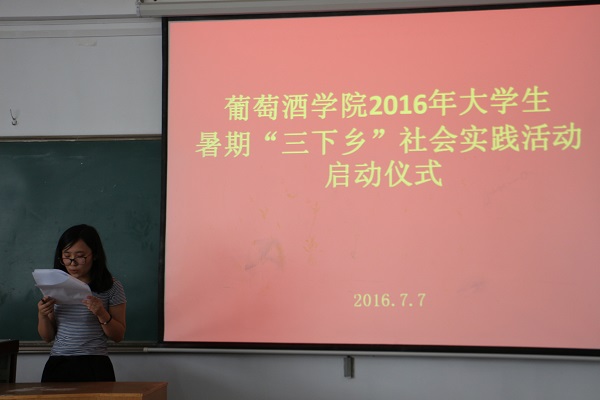 最后,邓亚丽副书记从专业学习需要实践、认识社会需要实践、个人成长需要实践等方面强调了“三下乡”实践锻炼的重要性。邓老师指出,社会实践是接触社会、了解社会的重要途径,是专业学习和实践教育的重要组成部分,作为对实践能力有较高要求的葡萄与葡萄酒工程专业的学生,应抓住一切机会积极投身实践锻炼,通过实践了解社会、认识专业、成长自我。同时,邓老师要求全体团队负责人以此次启动仪式为契机,认真按照“科学谋划、目标管理、信息在线、过程控制”的原则对每支团队的工作任务进行统筹计划,合理分工,确保实践目标的充分实现。邓老师还就暑期实践安全的注意事项进行了特别强调。