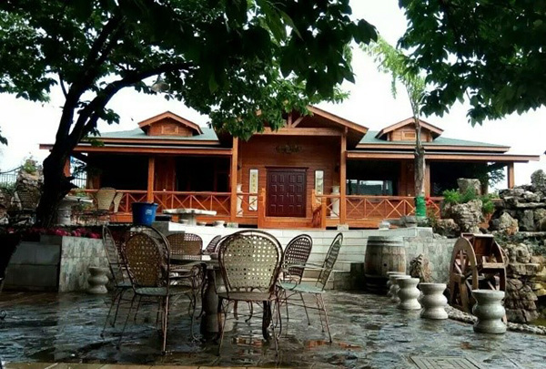 酒庄不仅进行酿酒生产,同时还具有餐饮功能。酒庄内部绿树成荫,小桥流水,环境清幽。品尝着甜美的水晶葡萄,坐在幽幽的板栗树下,王先生告诉我们,弥勒的干热河谷气候成功驯化了水晶和玫瑰蜜葡萄,但是成熟期的降雨使得葡萄含糖量低而含酸量高,为避免葡萄烂在地里,只得在充分成熟前进行采收。为延迟葡萄成熟,酒庄采用了套袋和环剥技术促进糖分积累,同时在过滤时除去肉囊降低酸度;为促进浸渍则采用了冷浸渍和添加果胶酶,进行沥摊倒罐,即每次倒罐都将果汁全部沥出后再进行循环。