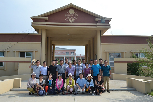 当日下午考察团一行还考察调研了别具特色的瑞枫奥塞斯葡萄酒庄园以及充满苏格兰情调的苏各兰(蘇各蘭)酒庄。瑞枫奥塞斯葡萄酒庄园系比利时与法国外商合作投资,创立于2004年,庄园占地400亩、种植了约13万株从法国引进的优质葡萄树苗。主要葡萄品种为品丽珠,西拉,霞多丽。考察团考察了酒庄的葡萄园和酒窖。李华教授针对葡萄园的长势管理、酒庄葡萄酒的橡木桶使用提出了建设性意见和建议。