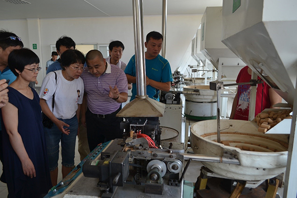 御宝软木制品有限公司成立于2007年,总投资2000多万元,主要产品有天然软木塞、1+1贴片软木塞、超微颗粒软木塞、合成软木塞,已成为中国软木行业的知名企业。总经理王玉宝陪同考察团成员参观了工作车间和仓库,并向王华院长和考察团成员介绍了公司橡木塞制造的工作流程。王经理在接待完考察团后就要飞往俄罗斯洽谈业务,王院长对王总在百忙之中能耐心热情陪同讲解表达了真挚的谢意。