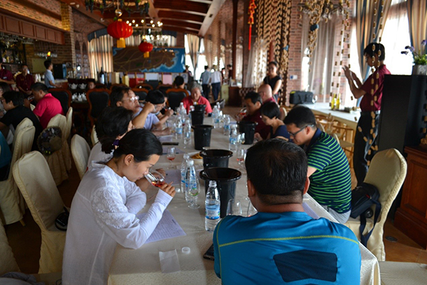 的老朋友。考察团在台依湖天鹅堡酒吧进行了葡萄酒品鉴,共品鉴了干白、干红、桃红、甜红、甜白12款葡萄酒。台依湖葡萄酒的质量得到了考察团的肯定,王华院长在品鉴结束后给台依湖酒庄提了两点建议:1) 尽量降低某些甜型葡萄酒的甜度,做半干、半甜葡萄酒;2)白葡萄酒尽量不进橡木桶,最优化保持浆果的自然香气。