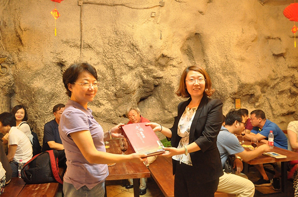 正在筹建的中国葡萄酒博物馆“葡萄美酒夜光杯”提供了良好的借鉴素材。在与馆长的亲切交谈中,王院长肯定并赞扬了青岛葡萄酒博物馆在传承和推广葡萄酒文化方面所做出的努力和贡献并赠予青岛葡萄酒博物馆《中国葡萄酒》一书。