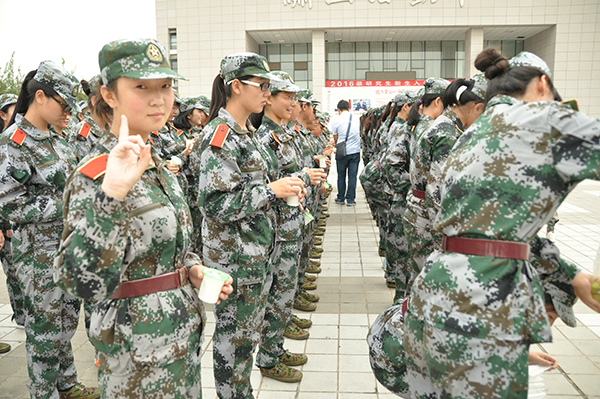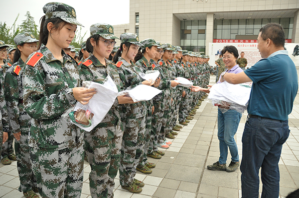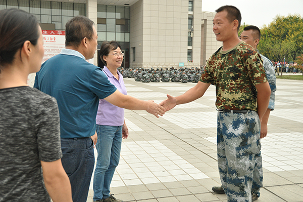 8月29日上午,党委书记胡俊鹏、院长王华、副院长刘树文、房玉林、党委副书记邓亚丽深入军训现场,亲切看望慰问军训中的2016级新生。
