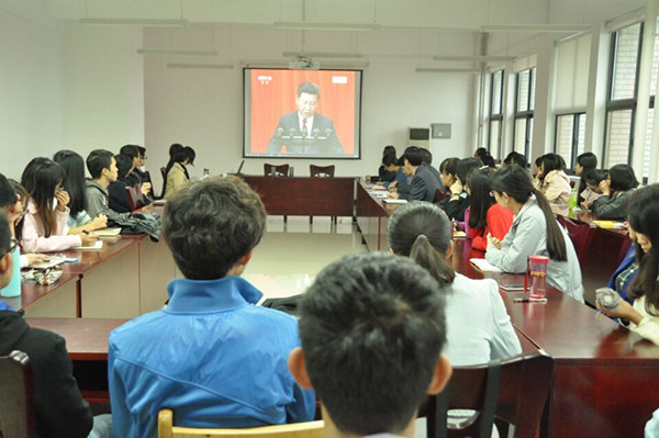 党委组织全院师生代表50余人观看纪念红军长征胜利80周年大会现场直播,师生就习近平总书记在纪念大会上发表的重要讲话展开热烈讨论。