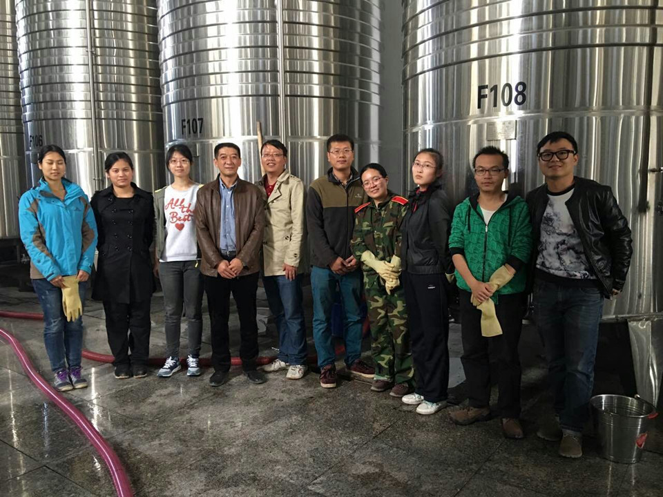 校友黄建清、齐东虎、郭亮就阳光田宇酒庄2016年的酿酒状况进行了交流,并和同学们一同品尝了当年的发酵酒,交流了品尝心得。领导们对学生在乌海的实习工作表示肯定,希望同学们明确自己作为乌海产区实习基地的开拓者和先锋的身份定位,谨记“耕土耕心,酿酒酿人”的院训,以一定要把乌海实习基地建设好的坚定信念踏实工作、认真负责地把剩下的实习工作完成好,为加强校企合作,推进麻豆成人