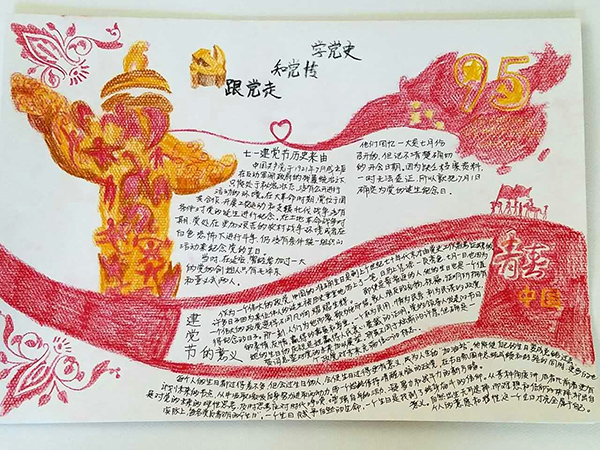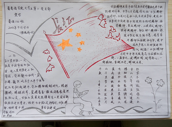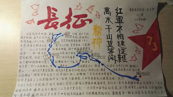 开展纪念红军长征胜利80周年手抄报活动。包括校外实习的全体大学生党员积极参加手抄报制作活动,大家结合自己对长征的认识和理解,精心设计,细细描绘,18幅手抄报在尺幅天地中激发爱国情怀,在回眸艰辛历程中缅怀红军不朽功勋,极大的激发了学生党员爱党、爱国的深切情怀和刻苦学习、努力成才的动力源泉。