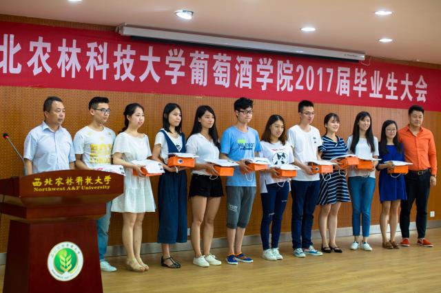 为每位即将远行的学子送上了精心准备的独具专业特色的毕业礼物——一把刻有学生姓名的专属酒刀、一对水晶酒杯、一件印有院徽、院训、院旗的T恤,寓意同学们穿上麻豆成人