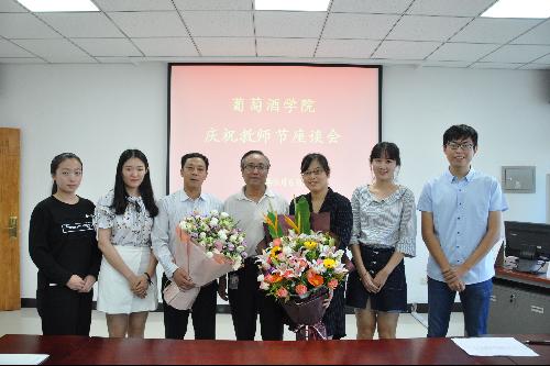 教师代表张振文教授、陶永胜教授、宋育阳博士献花,以表葡酒学子对全体老师谆谆教诲和悉心指导的感恩之情。