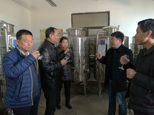 院长房玉林教授,陪同一行领导,先后参观考察了示范站露天葡萄种植栽培示范区、防寒优质葡萄品种示范区以及酿酒生产示范线,就试验站的工作进行了认真查看和仔细询问,示范站负责人房玉林院长围绕今年站内开展的科学研究、科技培训、校地共建科技扶贫、科技入户、酿酒生产示范线建设及本科生教学实习等工作,进行了详细汇报,并针对合阳县委县政府提出的“建设红地球葡萄田园综合体”的设想,与王亚平处长及合阳县主要领导进行了讨论交流。