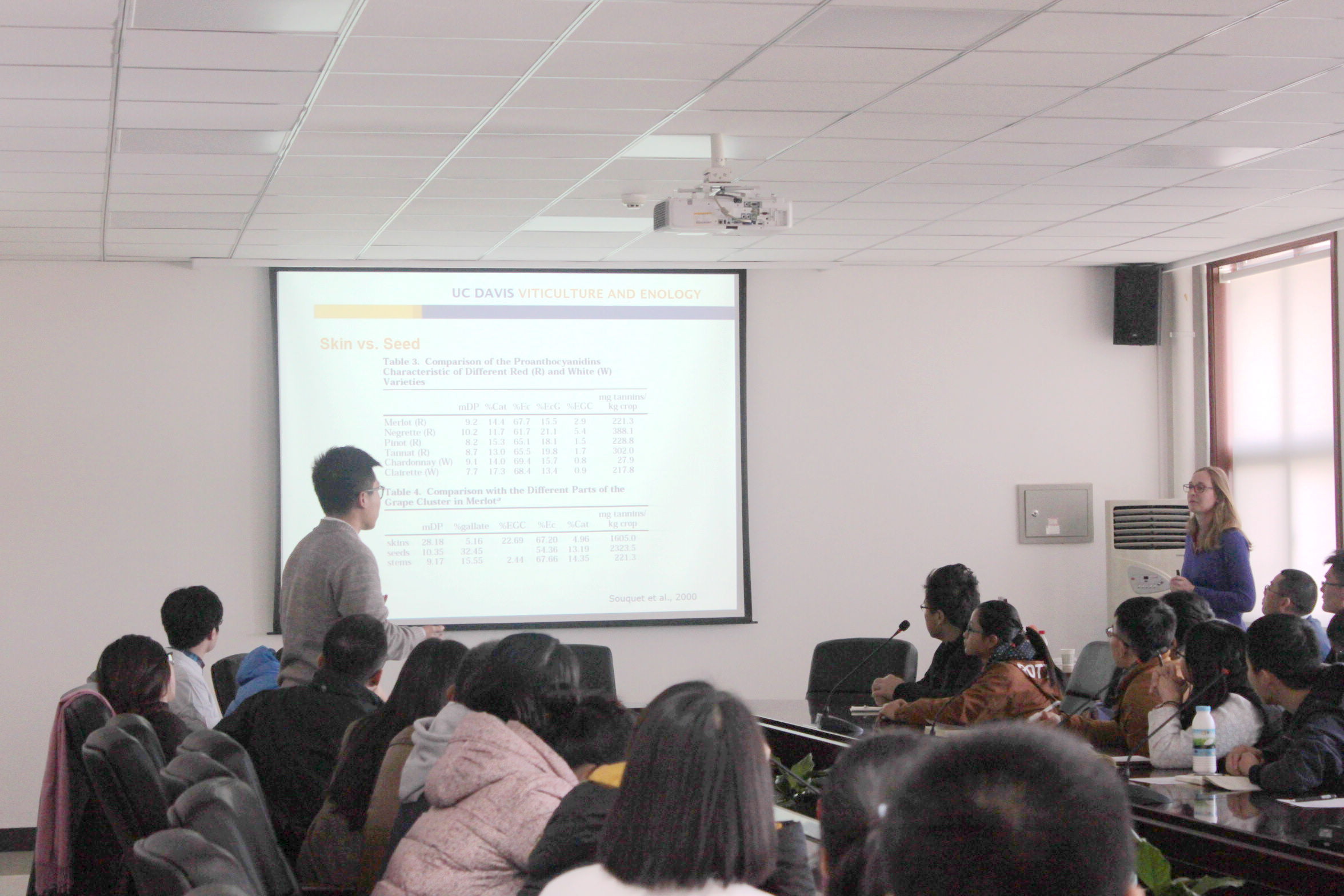 师生做了题为“Red Wine Mouthfeel Perception”的学术报告,深入浅出地介绍了葡萄酒中单宁特性对葡萄酒口感的影响机制及检测方法。麻豆成人