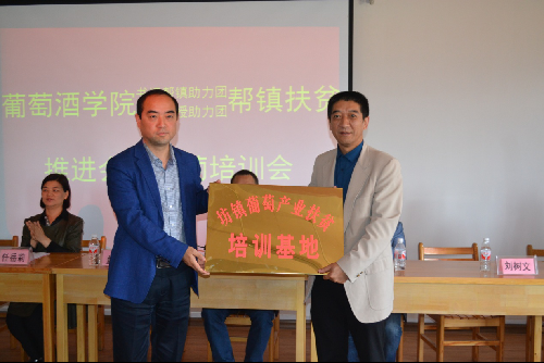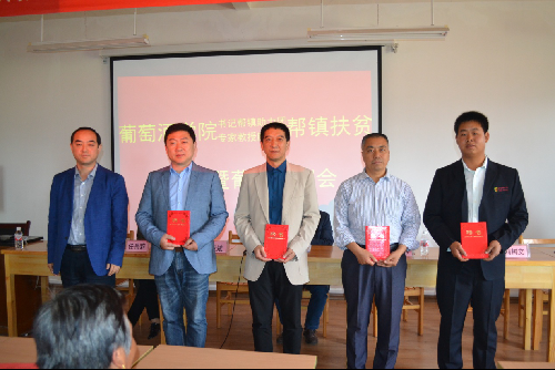 会上房玉林院长和胡俊鹏书记分别做讲话,坊镇党委书记董亚斌同志代表坊镇人民政府授予合阳葡萄试验示范站“坊镇葡萄产业扶贫培训基地”,聘请房玉林、刘树文、惠竹梅、刘旭、杨和财、张宗勤、秦义、梁艳英和张鹏组成专家教授助力团,并为四位专家代表颁发聘书,坊镇副镇长任岳莉表示“坊镇葡萄产业扶贫培训基地”是一个集葡萄技术培训、管理培训、市场培训为一体的综合性的培训基地,对于整合红提栽培技术、市场等资源,提高培训质量有重要的意义。同时,也希望广大红提种植户珍惜机会,经常到基地就葡萄栽培、管理、销售等方面进行学习,切实提升自身的栽培管理技术和抗市场风险能力。