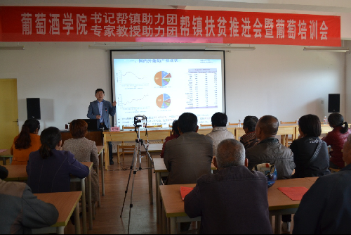 院长房玉林、副院长刘树文、坊镇党委书记董亚斌、我校在乾落村挂职第一书记的韩锁昌等双方领导和专家教授以及坊镇葡萄种植户代表共计120余人出席会议,坊镇科技副镇长李婉平主持会议。