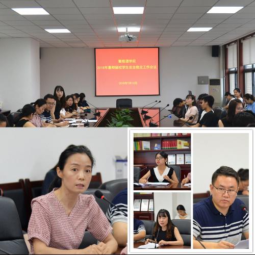 党委副书记邓亚丽召开暑期安全稳定专题会议,安排部署学生层面安全稳定教育工作,要求全体人员保持信息在线,认真做好学生离返校统计,掌握学生暑期动向,把关活动审批制度,严格请销假制度。班主任层面通过开展专题班会,强化学生安全防范意识、法治意识和自防自救能力,提醒学生注意人身安全、财产安全、饮食安全等。同时,引导学生充分利用暑假时间做好学业规划,充实渡过暑假。
