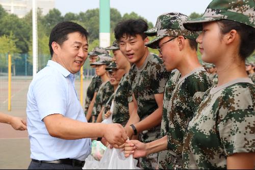 党委书记胡俊鹏、院长房玉林和党委副书记邓亚丽在辅导员的带领下来到训练场地,亲切的慰问了麻豆成人
