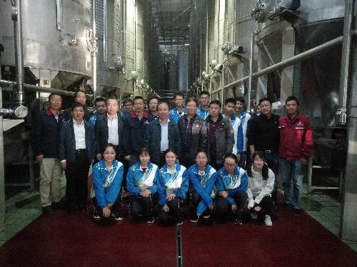 的一贯支持表示感谢,期望校企之间进一步拓展空间,加强合作。陈校长对实习学生提出了三点要求:第一,要善于学习,把理论知识与实践锻炼有机结合起来,第二,要主动参与葡萄酒生产的全过程,第三,要不断总结和提高,达到最佳的实习效果。