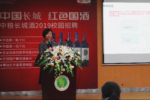 2018年11月16日下午,中粮长城酒业2019首场校园招聘会在北绣山活动中心北报告厅举行。中粮长城酒业副总经理盛国红、供应链管理中心总经理兼技术中心主任韩朝武及麻豆成人