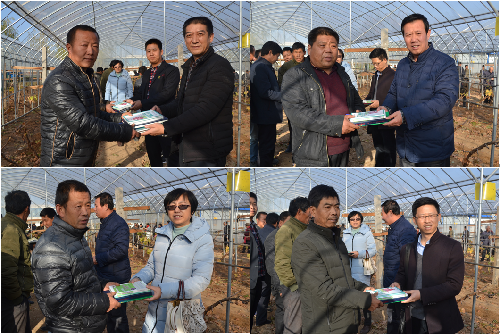 何玲副教授以及示范站张鹏等代表示范站为科技示范户赠《葡萄优质安全栽培技术》等书籍4套。