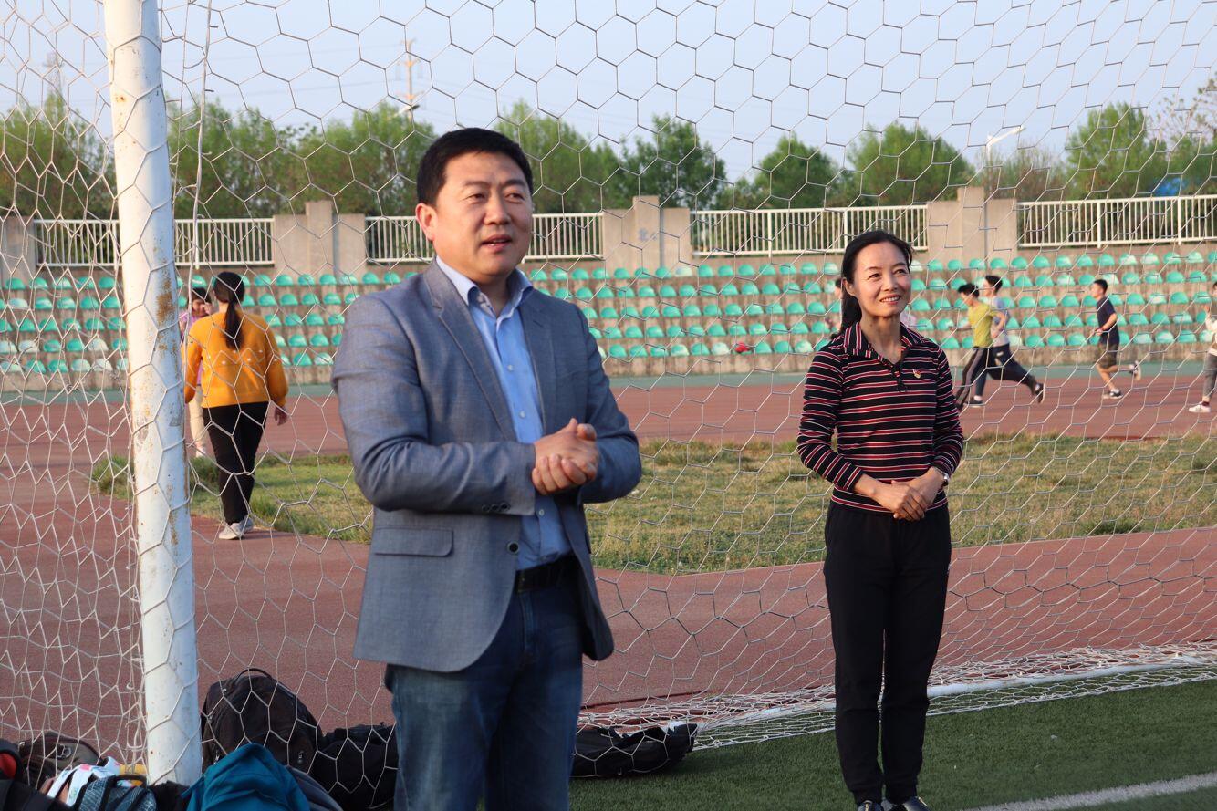 院长房玉林、党委副书记邓亚丽、团委书记赵星宇和18级辅导员薛雪来到田径场对正在备战的运动员们进行慰问。