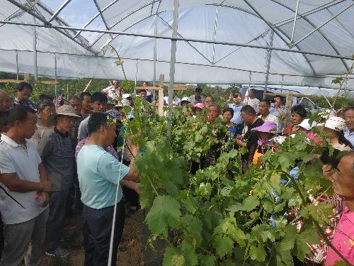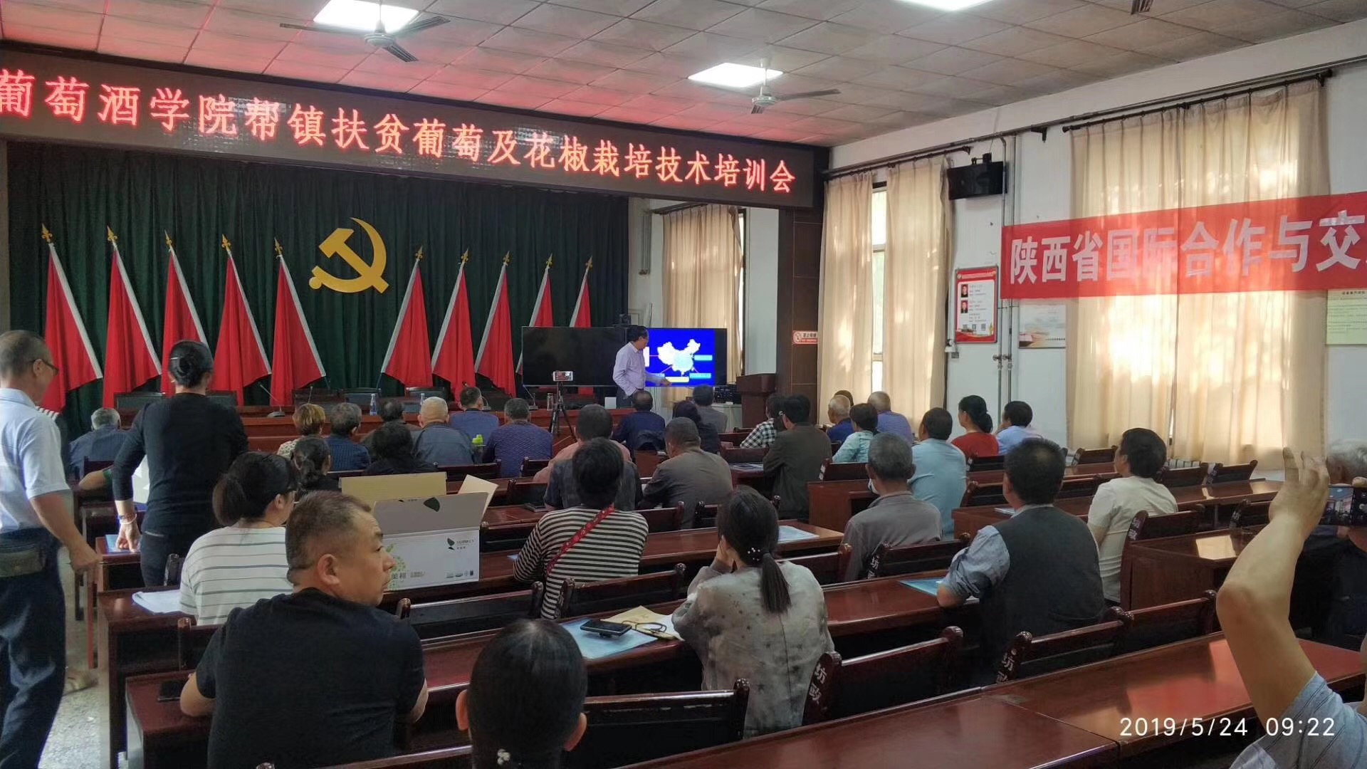 专家团在坊镇机关会议室组织召开了葡萄及花椒栽培技术集中培训会,坊镇葡萄和花椒种植户80余人参加了此次培训会。专家教授分别作葡萄花果期管理技术、花椒田间管理、葡萄酒酿造三个专题培训。解决了葡萄、花椒花果期管理存在的问题,通过提升果农田间管理的规范化、科学化水平实现提质增效,通过引导葡萄果农通过酿酒延伸农产品产业链,提升农产品附加值实现增收目的。本次技术培训会发放《冷棚红提葡萄栽培技术手册》260本,发放《葡萄栽培技术规程》150余本,切实帮助了农户,为坊镇脱贫攻坚和乡村振兴发挥了作用。