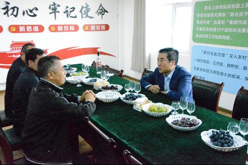 的科技、人才优势和合阳地区生态优势,围绕渭南及合阳葡萄产业发展需求,与当地政府配合共同开展葡萄优良品种引进、良种选育、丰产栽培技术及优质葡萄酒酿造技术示范推广。另外汇报了近几年示范站为了更好地围绕合阳县葡萄产业发展需求,推动合阳鲜食葡萄产业发展,加大了对站内基础设施以及栽培模式的改进力度,将合阳葡萄试验示范站打造成为带动合阳县乃至整个渭北地区产业结构优化升级、现代高效农业发展的“火车头”。