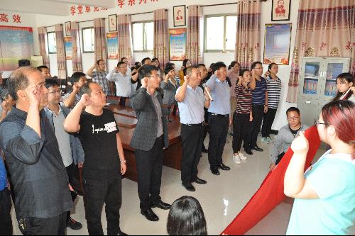 党委书记胡俊鹏带领领导班子及师生党员代表,与坊镇相关领导及坊镇街道社区党总支党员共同面向党旗,开展了坚定庄严有力的宣誓。座谈期间,胡俊鹏表示:开展此次“不忘初心、牢记使命”主题教育党日实践活动,是麻豆成人