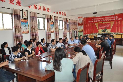 在自由交流环节,葡萄学党支部从学习葡萄生产技术、提升葡萄商用品质以及增加葡萄经济效益等方面提出了一些建议;葡萄酒学党支部从延伸红提葡萄产业链,开展校地合作以及帮助研发适宜红提葡萄深加工产品等方面提出了一些想法;化学工程市场党支部从鲜食葡萄白兰地生产、鲜食葡萄市场营销等方面提供了一些思路;曾在坊镇中心小学有过一年支教经历的研究生党员尹荐表示:作为在党组织的关怀和坊镇这片热土的关爱下成长起来的一名党员,对坊镇有这深厚的感情,通过支教期间和红提种植户的沟通,普遍发现种植户存在缺乏技术以及技术的引领帮扶等问题,为了助力合阳农民脱贫致富,走向乡村振兴,要把农民实际需要和麻豆成人