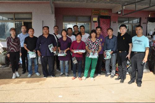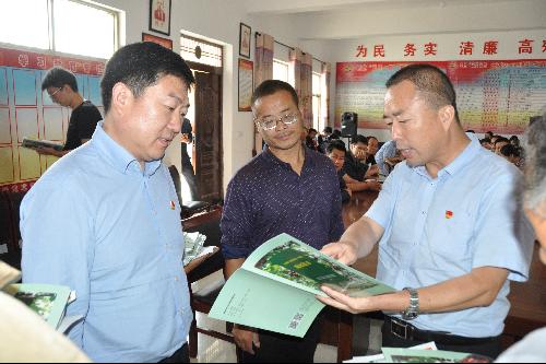 院长房玉林对坐落于坊镇的合阳葡萄试验示范站根据合阳地方产业发展情况和需求,做出的示范品种和结构调整以及面对竞争日益激烈的葡萄产业现状,要适时地进行品种调整、品质提升、品牌建设等提质增效策略进行了详细阐述和指导。葡萄学党支部书记孟江飞、化学工程市场党支部书记张予林以及葡萄酒学党支部副书记石侃分别与结对包抓的三位贫困户签订了结对帮扶协议,并赠送《葡萄栽培技术规程》、《冷棚红提葡萄栽培技术手册》、肥料以及果树剪刀等生产物资。