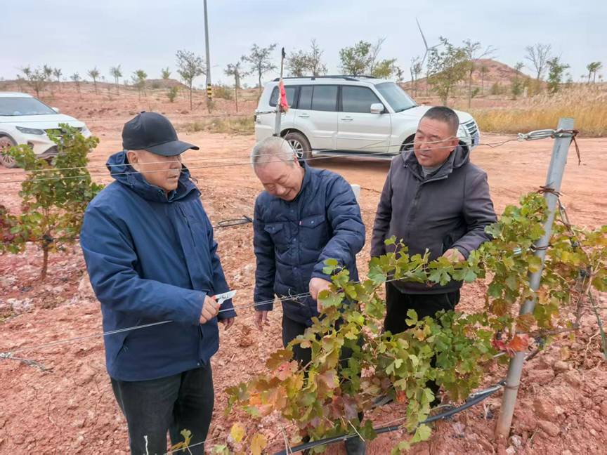 2025年10月20日,李华教授抵达此次帮扶行程的第一站——宁夏吴忠,将工作重心首先放在葡萄酒产业的“源头”——葡萄种植环节。10月21日上午,他在西班酒庄牵头举办酿酒葡萄极简化种植模式培训会议,邀请15个酒庄的技术骨干、负责人参会。培训中,他结合宁夏当地气候、土壤特点,详细拆解极简化种植模式在降低成本、提高产量、保障品质等方面的技术细节,还现场解答参会人员提出的“极简化种植趋势和优点等问题,为酒庄筑牢种植根基提供专业指导。当天下午,他马不停蹄走进西班酒庄各个生产种植基地,弯腰查看葡萄藤生长状态,用手触摸土壤感受湿度,与基地工人深入交流日常管理细节。