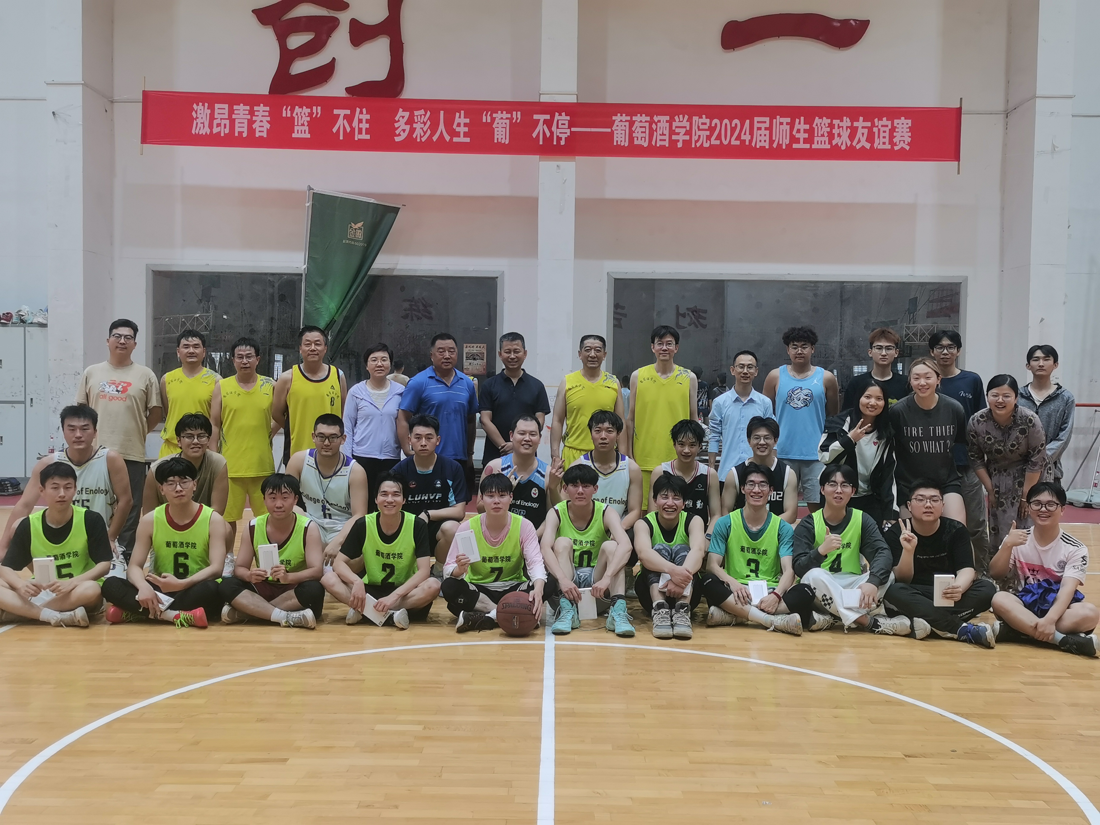 于北校篮球馆举办“激昂青春‘篮’不住,多彩人生‘葡’不停”2024届师生篮球友谊赛,以刘树文院长为代表的教职工代表队与毕业生代表队以篮球之名重燃青春梦、共叙桃李情,麻豆成人